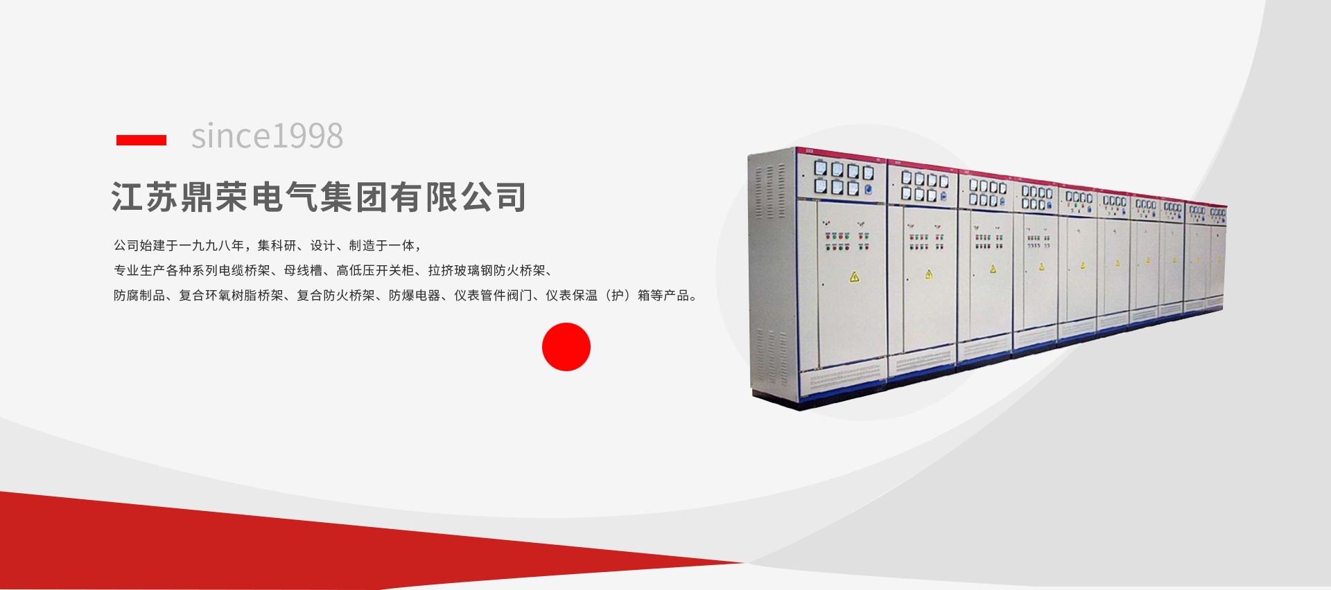 江蘇鼎榮電氣集團有限公司,位于風光秀麗的揚中市長旺東路2號。公司始建于一九九八年,集科研、設計、制造于一體,專業生產各種系列電纜橋架、母線槽、高低壓開關柜、拉擠玻璃鋼防火橋架、防腐制品、復合環氧樹脂橋架、復合防火橋架、防爆電器、儀表管件閥門、儀表保溫(護)箱等產品。本公司以優良的生產設備、可靠的技術力量和現代化的管理于2003年通過了國家ISO9001、2000質量體系認證,母線槽、開關柜通過了中國國家強制性產品認證。本公司生產的復合環氧樹脂橋架獲兩項國家專利,并通過了高新技術產品專家評審鑒定,獲江蘇省科學技術廳頒發的《高新技術產品認證書》。復合環氧樹脂橋架、拉擠玻璃鋼橋架同時還榮獲國家公安部消防局的《國家防火建筑材料質量監督檢驗中心》頒發的認證書,國家強制性標準GB 20286-2006阻燃制品標識使用證書。企業連續多年被鎮江市評為“重合同、守信用”單位,AAA級特級信用企業等稱號。產品廣泛應用于化工、煉油 、冶金 、電力、機械、醫藥、航空 、船舶等領域,并遠銷海外二十多個國家和地區,深受海內外用戶的一致好評。公司主要產品:1、 擠拉玻璃鋼橋架、鋼制橋架、復合環氧樹脂橋架、鋁合金橋架、復合型防火防腐橋架;2、 母線槽、管母線系列;3、 防爆電器、儀表閥門管件;4、 開關柜、配電箱、儀表保溫保護箱、防爆電加熱器。